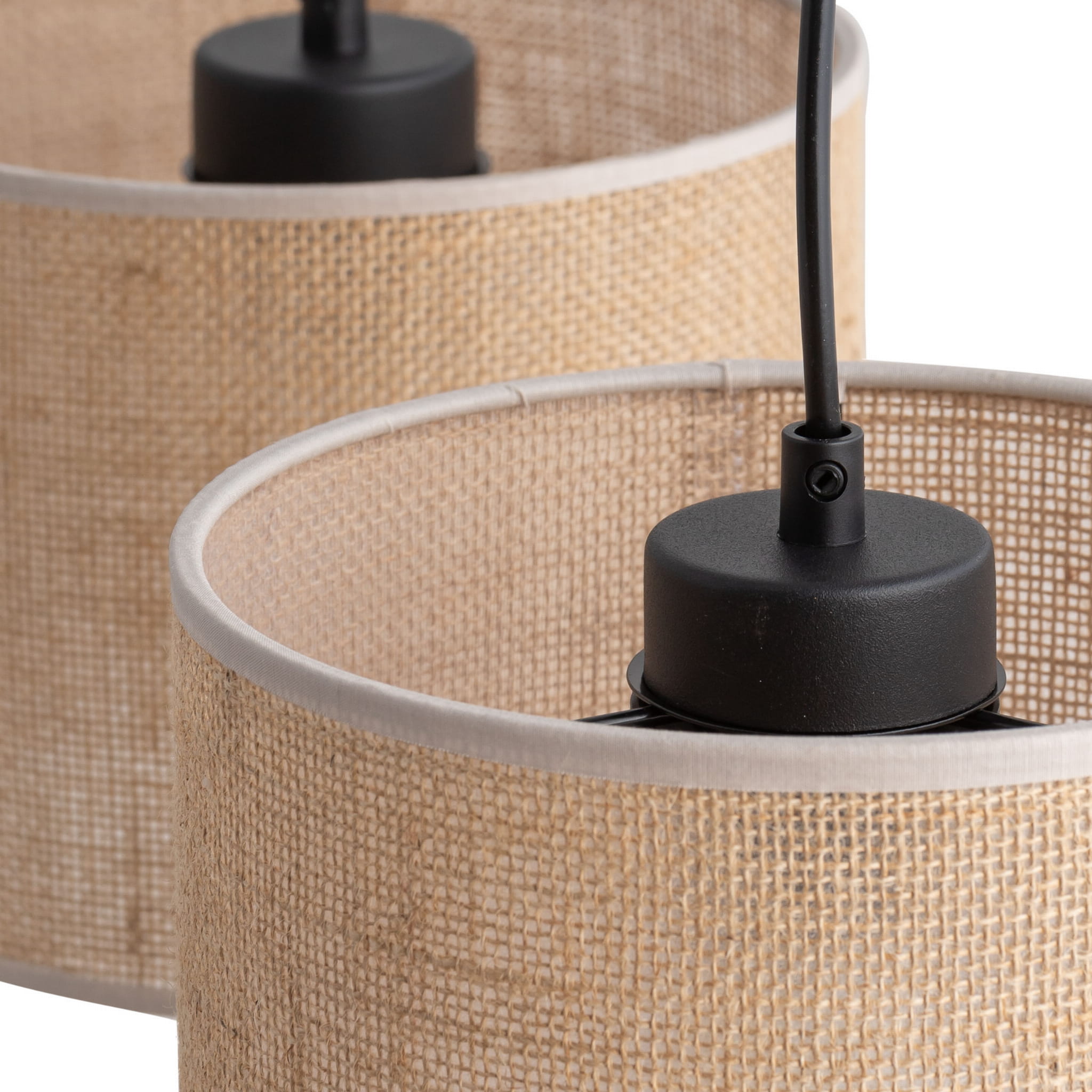 Juta to seria lamp przyjazna środowisku, klasyczny szkielet w czarnym kolorze o matowym wykończeniu łączy się z abażurem, który powstał z naturalnego materiału pochodzenia roślinnego w pełnii biodegradowanego. Włóknista struktura górnej części pozwala na rozproszenie światła i nadanie mu cieplejszego tonu. Jest to idealna propozycja dla aranżacji w naturalnej kolorystyce.