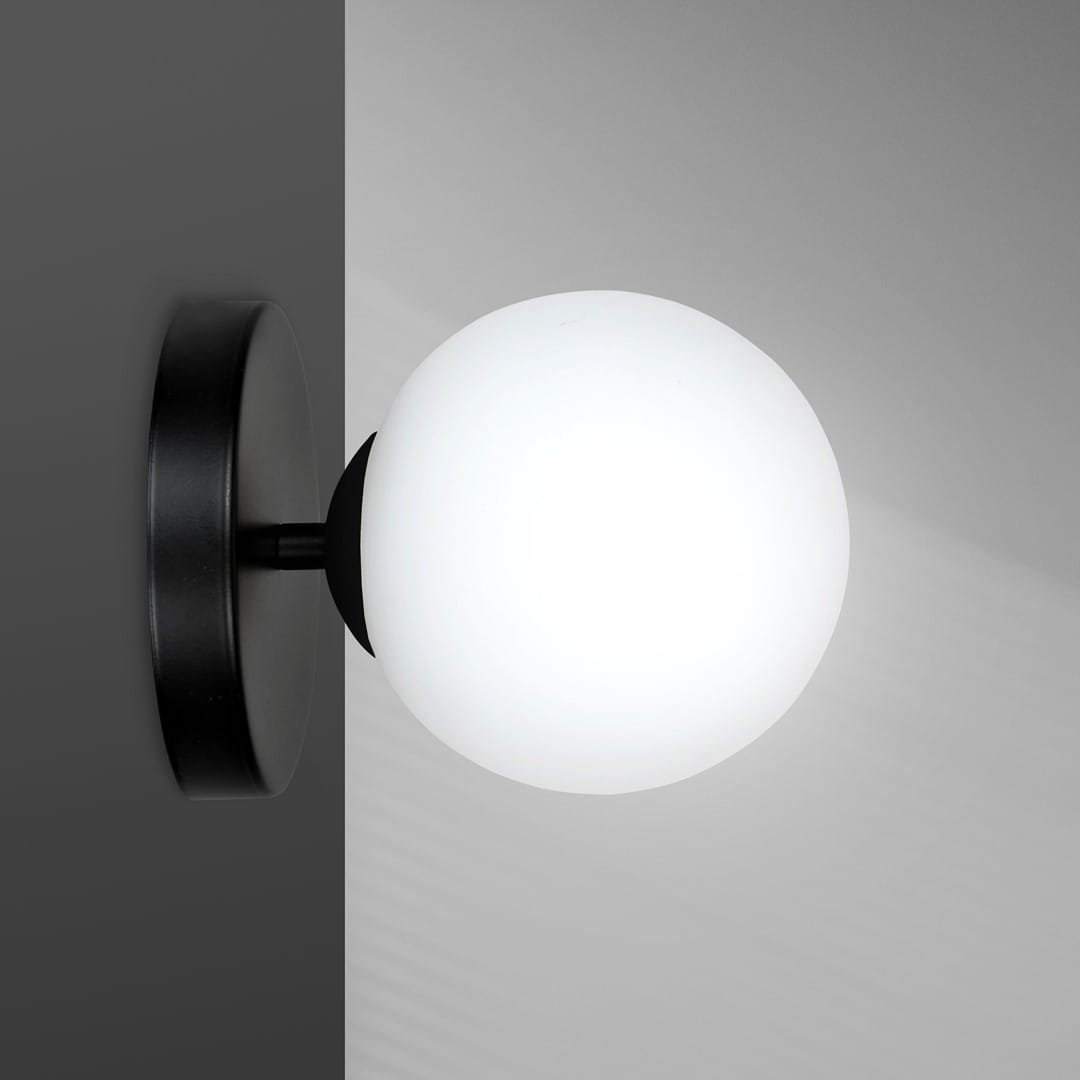 Minimalistyczny kinkiet z kloszem w kształcie kuli w kolorze białym opal. Dodaj subtelności i nowoczesnego uroku swojemu wnętrzu dzięki kinkietowi KALF. Wykonany z wytrzymałej stali, wprowadza delikatne, rozproszone światło do Twojego pomieszczenia. Wyprodukowano w Polsce.