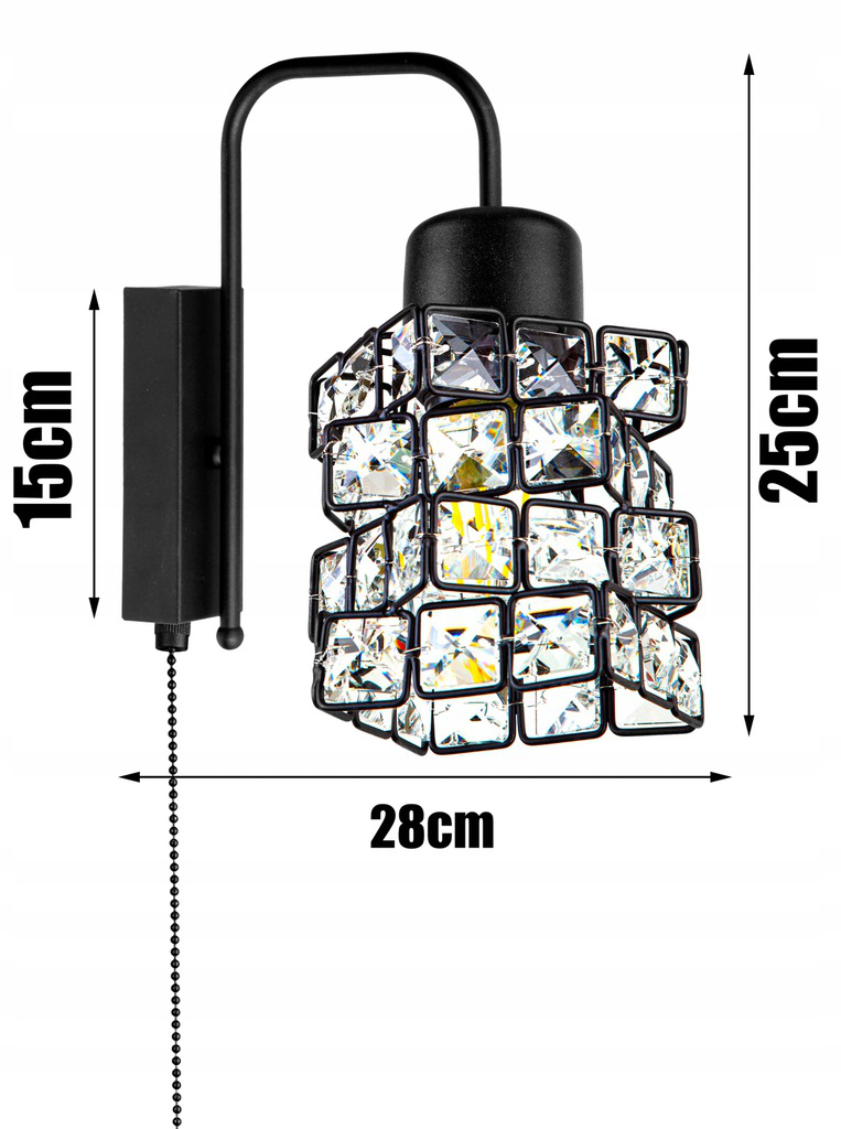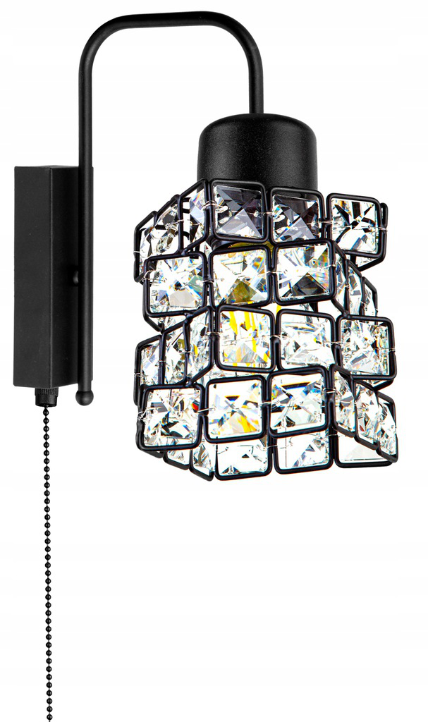 Kinkiet ścienny w formie kostki.Oryginalny,kryształowy klosz z elementami metalu świetnie wkomponuje się w aranżację w stylu glamour.Oprawa ta oprócz funkcjonalności jest także świetną,unikalną dekoracją pomieszczenia.Lampa dzięki kryształkom znakomicie odbija światło,tworząc niepowtarzalne efekty we wnętrzu.