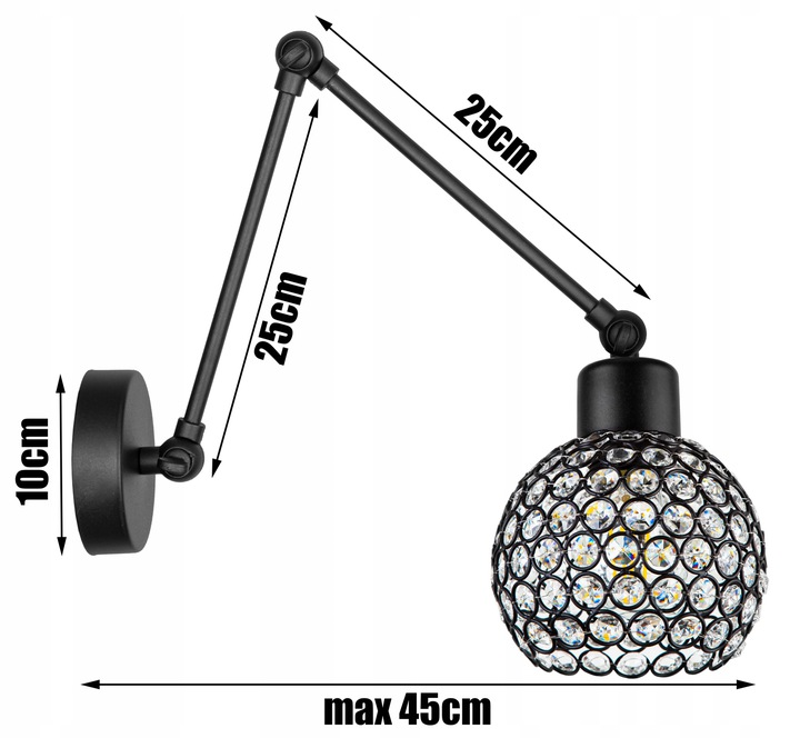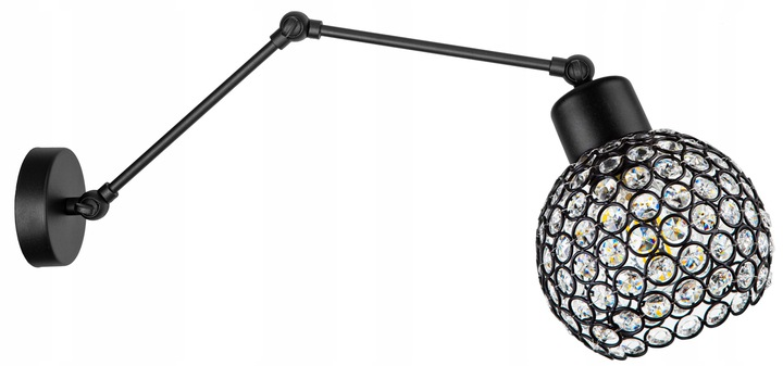 Kinkiet z łamanym ramieniem/na wysięgniku CRYSTAL BALL czarny/kryształki #603