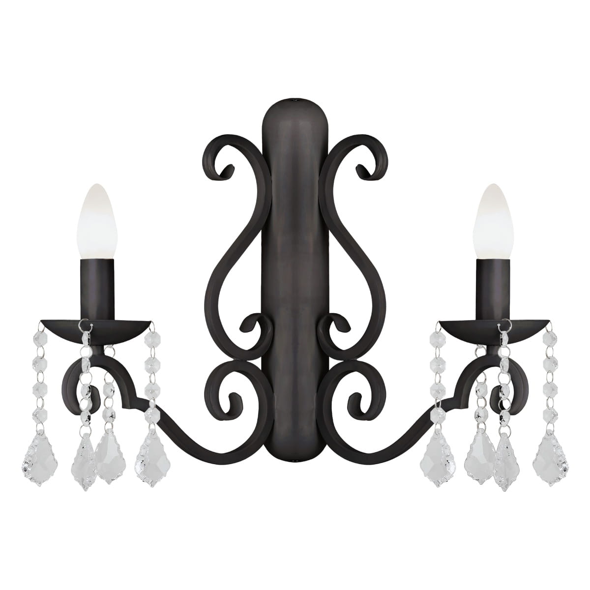 Kinkiet świecznikowy na dwie żarówki E14 Diadema czarny 7184 to propozycja oświetlenia ściennego do salonu, przedpokoju, restauracji, gabinetu lub hotelu. Kinkiet w stylu: Klasycznym, Rustykalnym, Glamour, Modern chic.