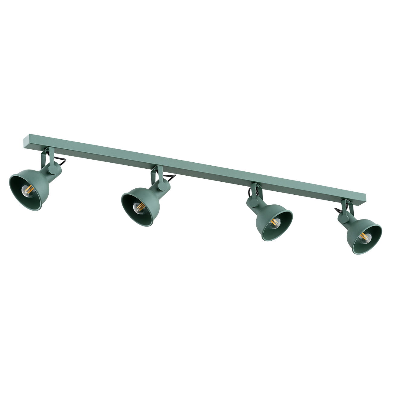 Lampy z serii LENORA to paleta kolorów, minimalistyczna forma, nawiązanie do stylistyki modern, a przede wszystkim dużo światła, które można zamontować zarówno na ścianie jak i suficie. Do wyboru pojedynczy reflektor, lampy podwójne i poczwórne na listwie lub sufitowy reflektor z 3 lampkami skierowanymi w różnym kierunku na okrągłym talerzu. Oczywiście kąt nachylenia i kierunku światła można wybierać samemu. W środku każdego ze stalowych kloszy znalazło się miejsce na żarówkę E14. Dobierz więc barwę światła i moc żarówki E14 taką jak lubisz i potrzebujesz. Przebierać możesz też w wariantach kolorystycznych tego reflektora. Jest tu i złoto z czernią i odrobina zieleni i lampa cała zielona, ale też i czerwona.