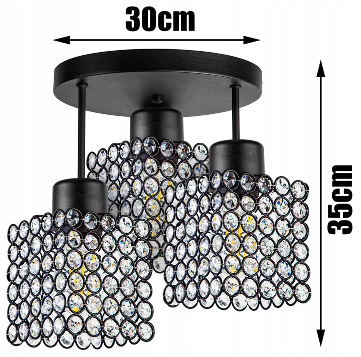 Lampa sufitowa 3-punktowa CRYSTAL CUBE czarny/kryształki #612