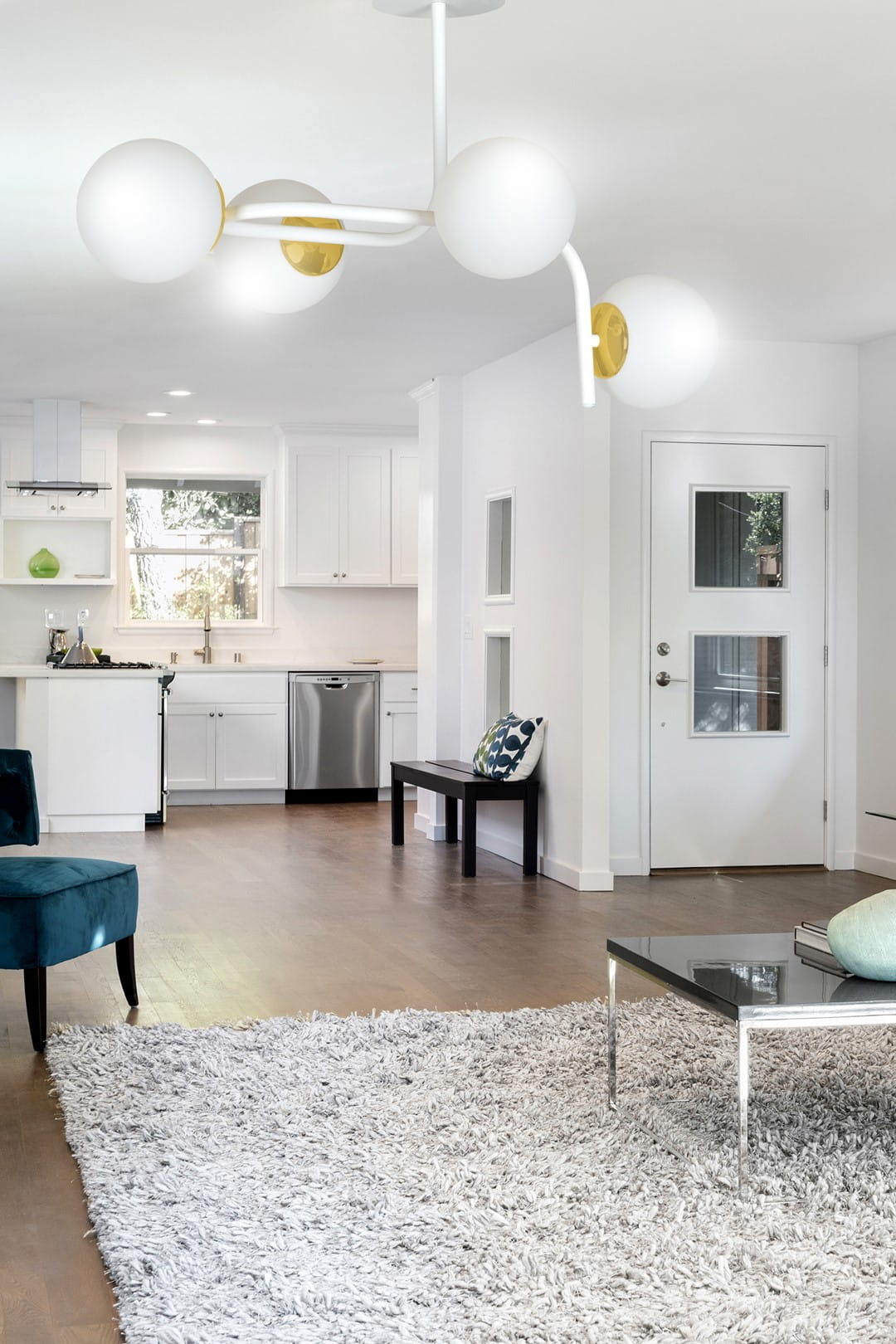 RAGNAR - seria nowoczesnych lamp sufitowych, idealna do wnętrz zarówno modernistycznych jak i tradycyjnych. Doskonale wygląda nad stołem lub wyspą, wprowadzając niepowtarzalny nastrój. Delikatne szklane klosze dodają elegancji i lekkości, a złote dodatki pięknie rozświetlają całość dodając jej blasku. Bardzo oryginalna forma lamp RAGNAR świetnie oświetla duże powierzchnie i doskonale komponuje się z różnymi aranżacjami. Ciekawa konstrukcja przyciąga uwagę i prezentuje się niezwykle stylowo. Wykonane z najwyższej jakości materiałów. Polski produkt. Dostępna w wersji na 2, 3 lub 4 źródła światła w kolorze czarnym lub białym.