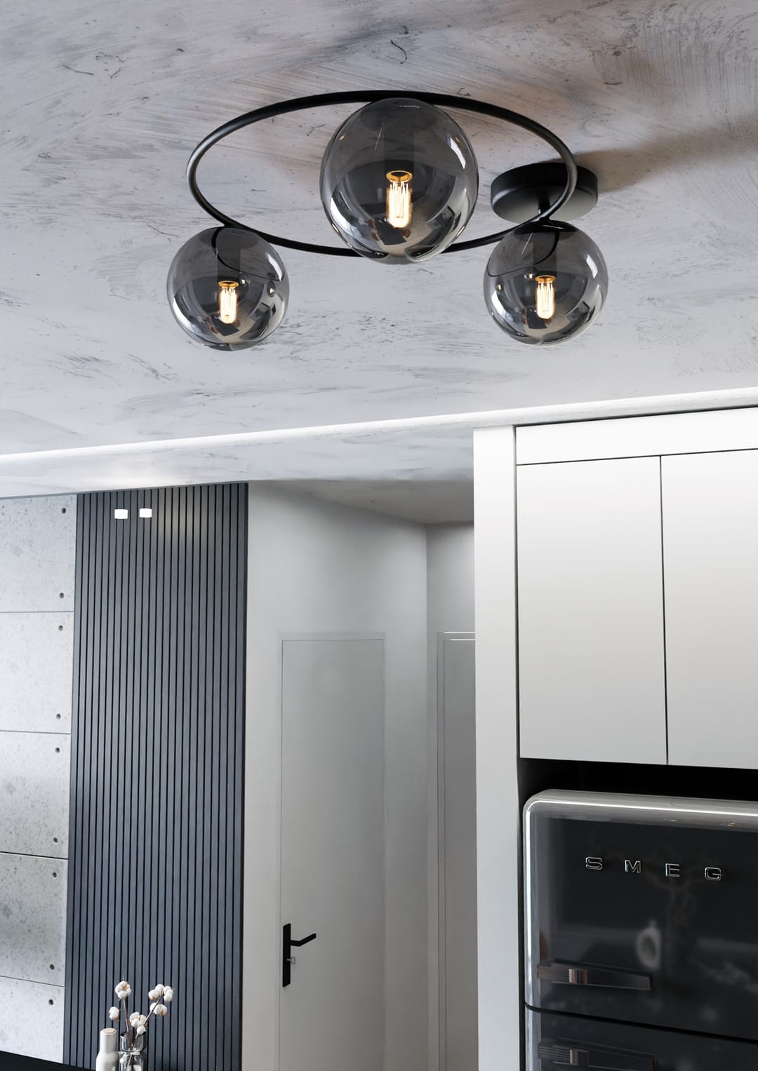 Plafon sufitowy SOPRA jest doskonałym wyborem dla osób ceniących minimalizm i industrialny styl. Jego oryginalna konstrukcja i wyjątkowy kształt nadają pomieszczeniu wyjątkowego charakteru, szczególnie w loftowych wnętrzach. Wykonany z materiałów najwyższej jakości, plafon sufitowy zapewnia nie tylko estetyczny wygląd, ale także trwałość i solidność. Szklane klosze dodają lekkości i rozpraszają światło w sposób równomierny, co pozytywnie wpływa na oświetlenie całego pomieszczenia. Dzięki swoim właściwościom, plafon sufitowy jest idealnym rozwiązaniem do salonów, kuchni czy jadalni, gdzie wymagane jest odpowiednie oświetlenie i estetyczny wygląd. Jego uniwersalny styl sprawia, że pasuje do wielu rodzajów wnętrz, zarówno nowoczesnych, jak i bardziej klasycznych.