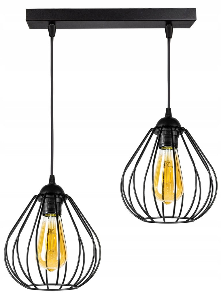 Lampa sufitowa wisząca 2-pkt druciak 990 świetnie sprawdzi się w połączeniu z innymi lampami z tej samej serii oraz niezależnie jako oświetlenie mieszkania. Kolor czarny półmat. Można ją samodzielnie skracać we własnym zakresie. Lampa posiada modne klosze z drutu w owalnym kształcie.