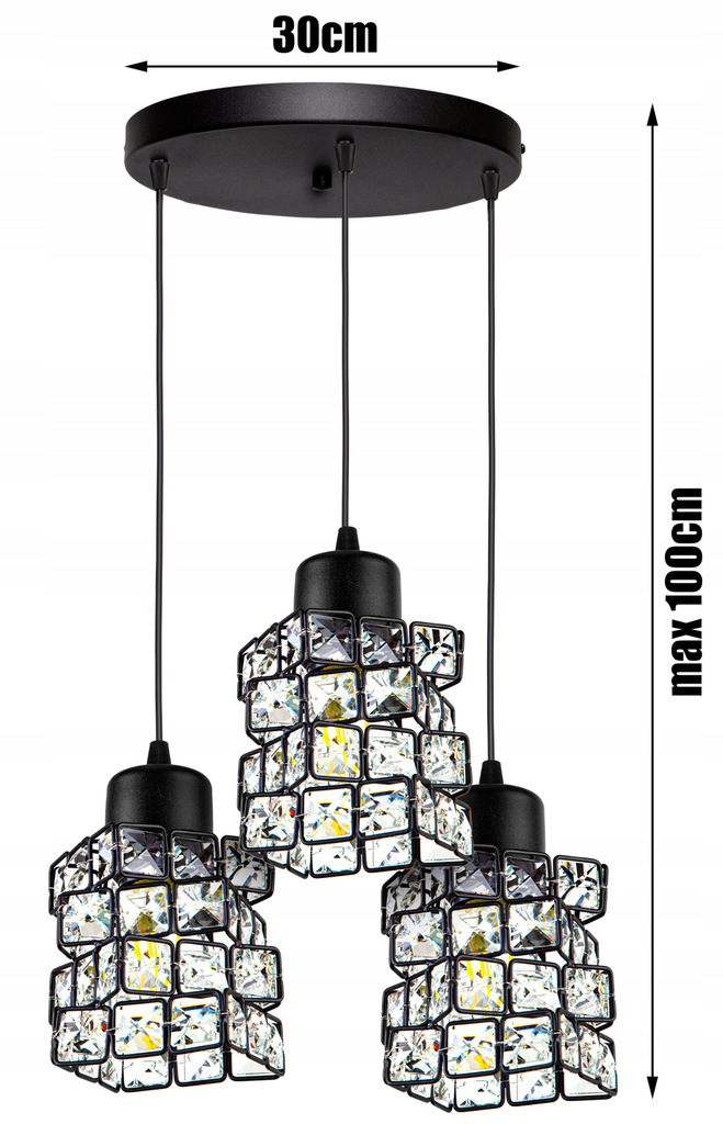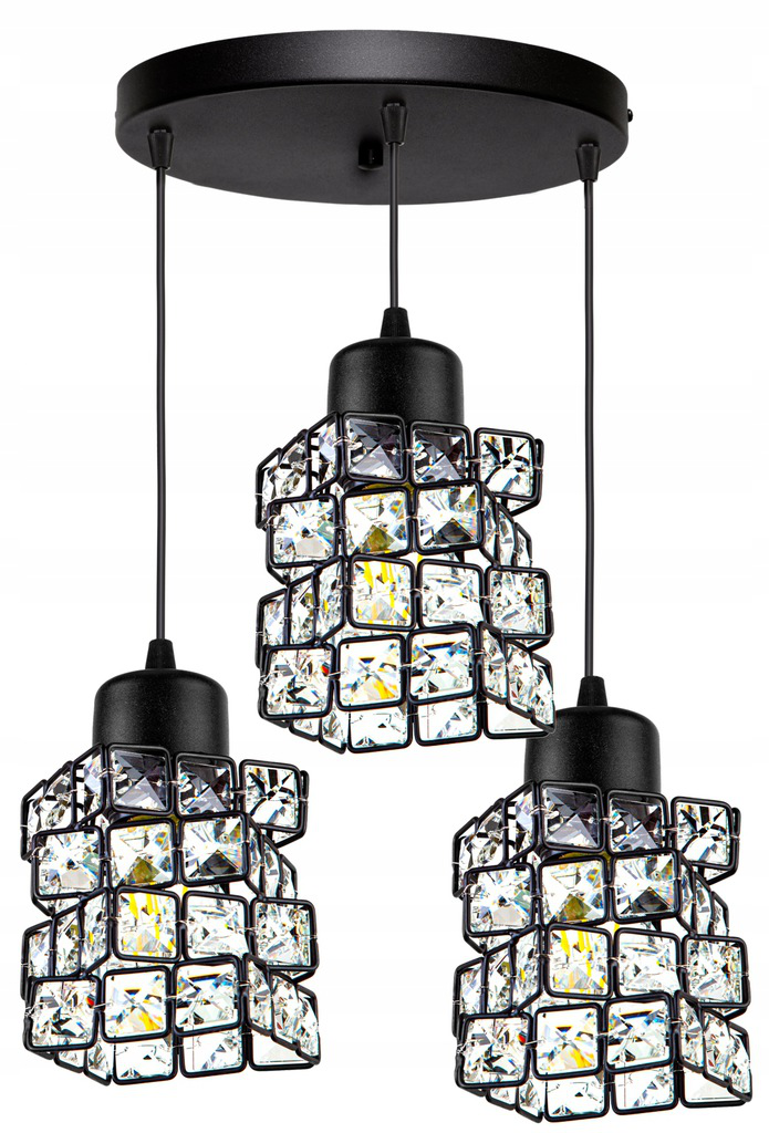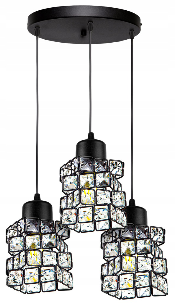 Lampa sufitowa wisząca 3-punktowa CRYSTAL czarny/kryształki #620