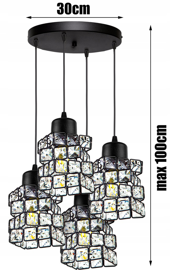 Lampa sufitowa wisząca 4-punktowa CRYSTAL czarny/kryształki #621