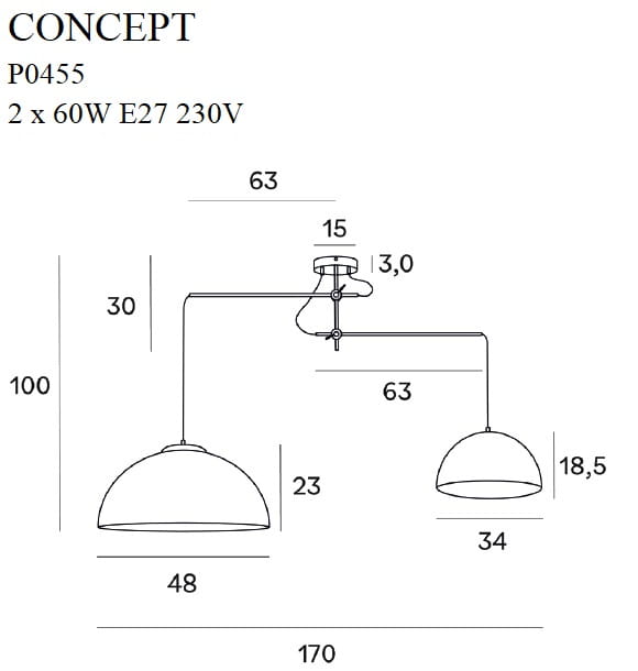 • Rodzaj lampy: Lampa wisząca 2-punktowa