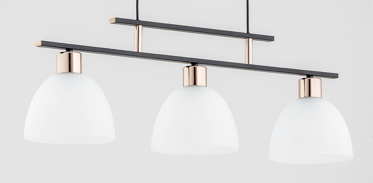Lampa wisząca SONATA Czarno Złota ALFA to elegancka oprawa sufitowa, która doskonale wpisuje się w styl nowoczesnej elegancji. Lampa wyposażona jest w szklane, białe, otwarte klosze, które dodają jej lekkości i stylu. Możliwość skracania lampy we własnym zakresie pozwala na idealne dopasowanie jej wysokości do potrzeb wnętrza.