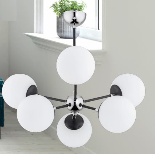 Lampa wisząca 6-punktowa SANDY chrom/czarny