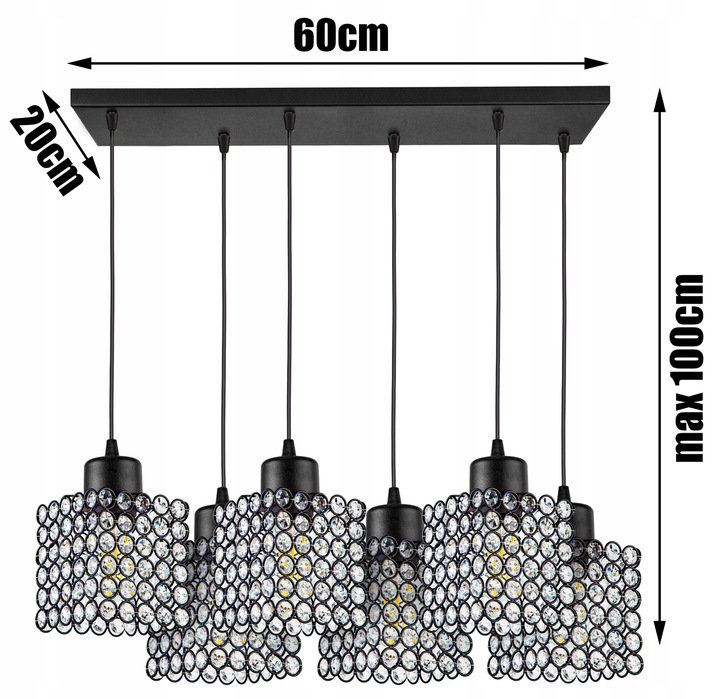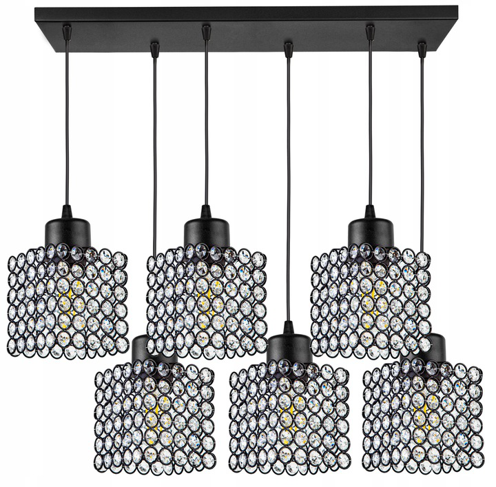 Lampa wisząca 6-punktowa listwa CRYSTAL CUBE czarny/kryształki #609