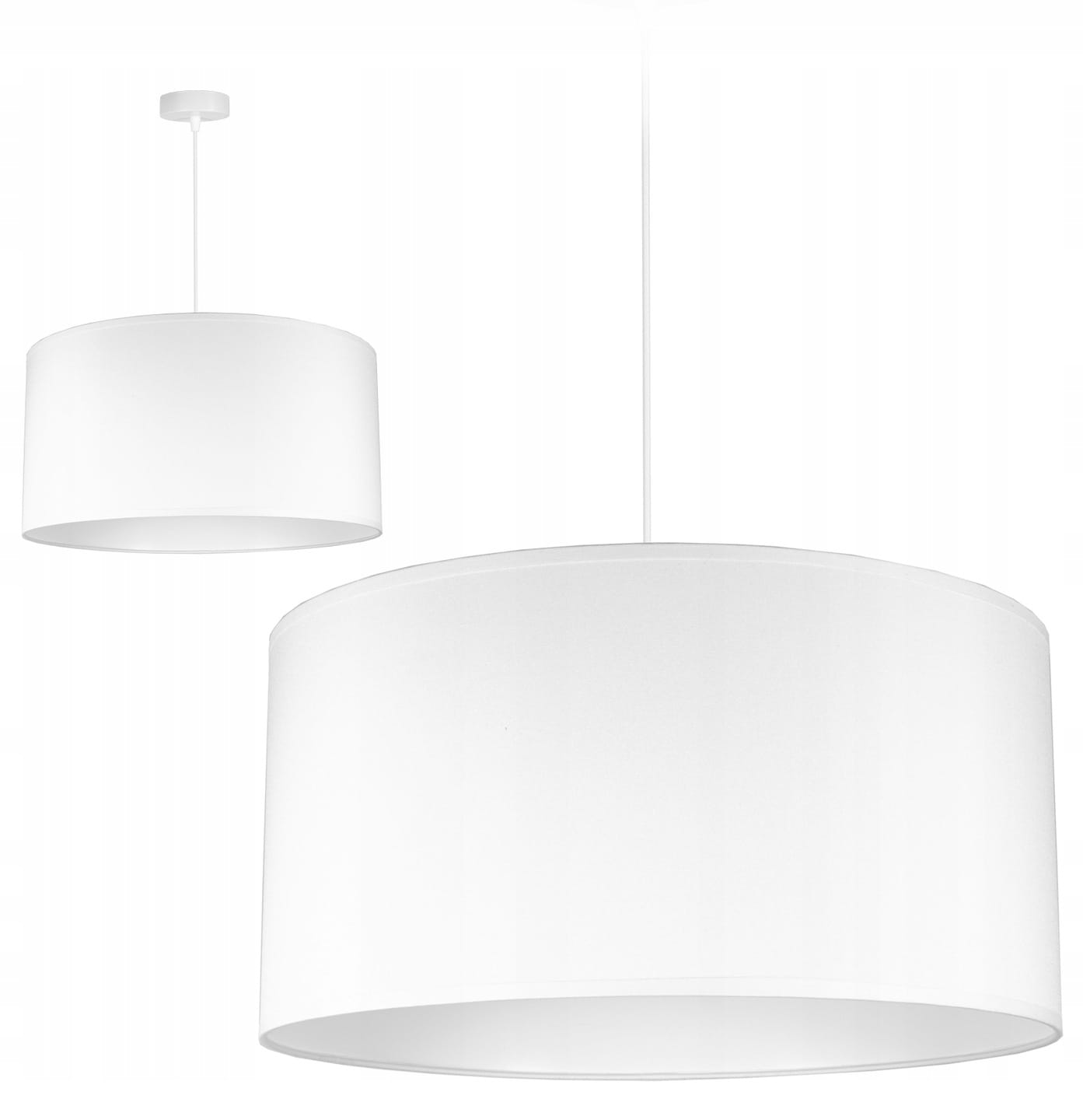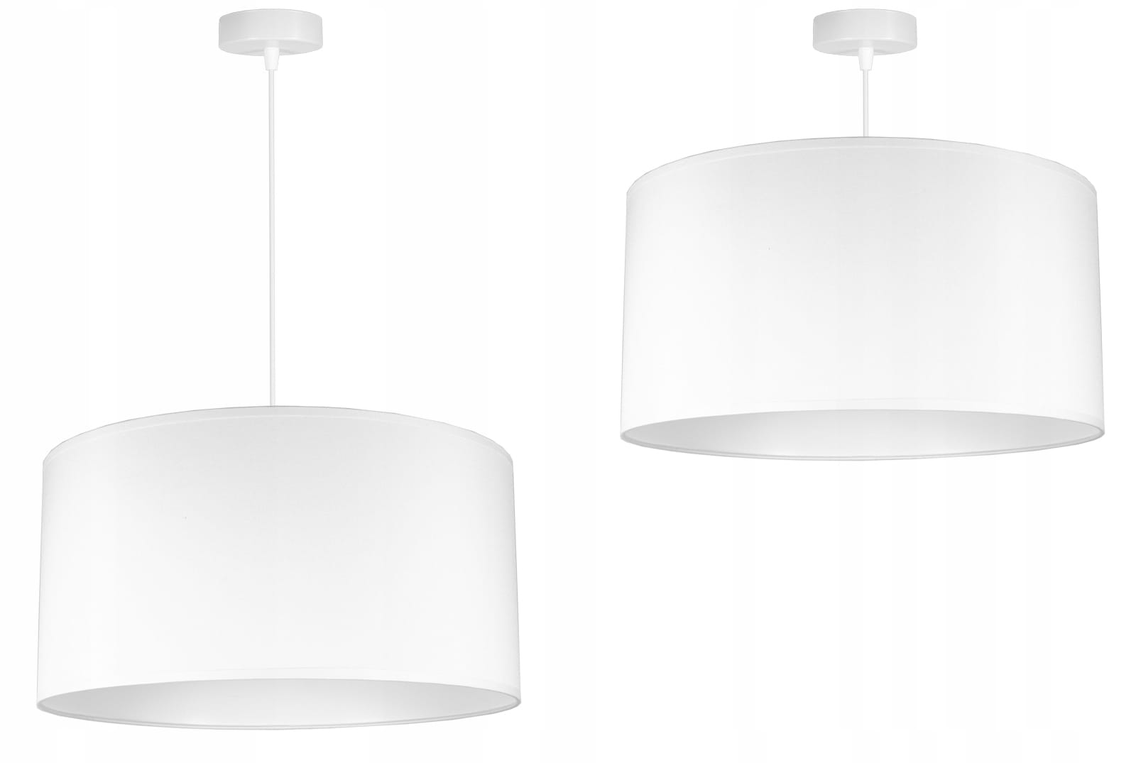 Lampa posiada abażur uszyty z gładniej białej tkaniny podbitej folią pcv.