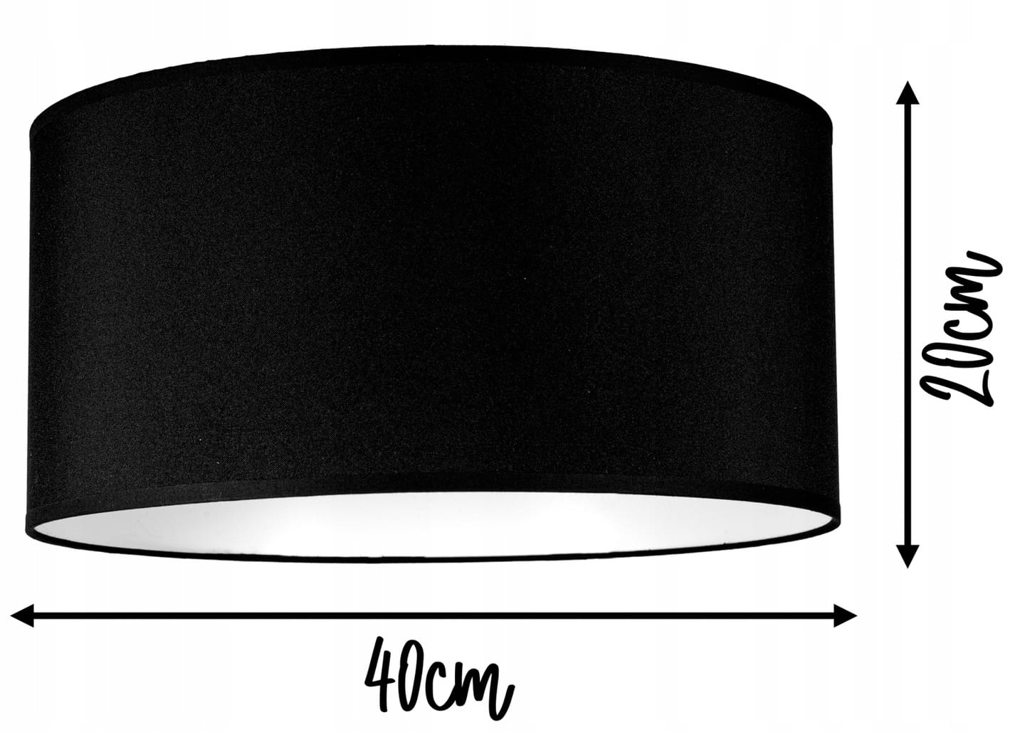 Lampa posiada abażur uszyty z gładniej czarnej tkaniny podbitej folią pcv.