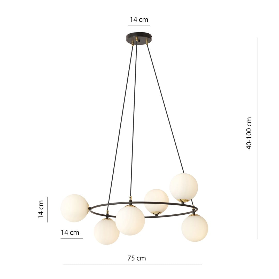 Lampa wisząca AZURA 6 BLACK/OPAL