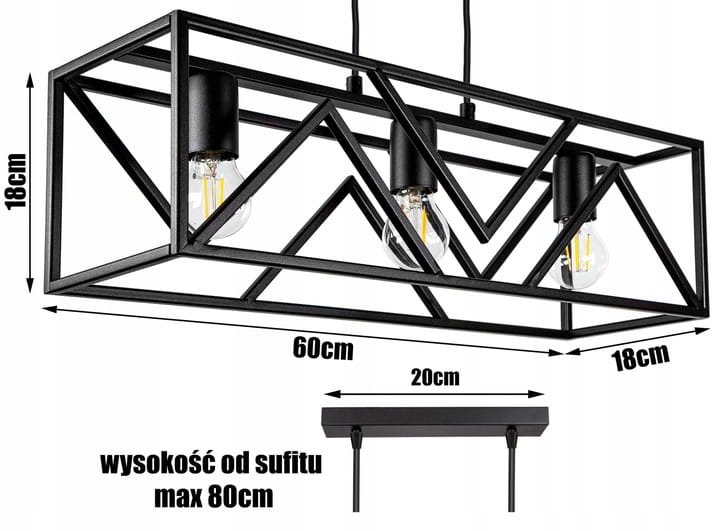 Źródło światła: 3 x E27 , 60W (możliwa led)
