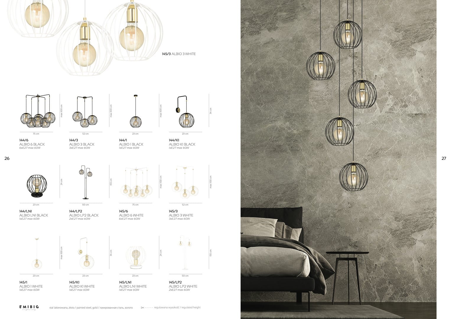 Seria lamp ALBIO wyróżnia się pięknymi drucianymi kloszami z eleganckimi elementami w kolorze złota. Lampa ta emanuje stylem, jest oryginalna i przykuwa uwagę. Doskonale oświetla wnętrze, jednocześnie stanowiąc piękny element dekoracyjny Twojego domu. Seria ALBIO jest dostępna w kolorze białym i czarnym oraz w wersjach na 1, 3 lub 6 źródeł światła. Produkt jest polskim wyrobem, zapewniającym wysoką jakość wykonania.