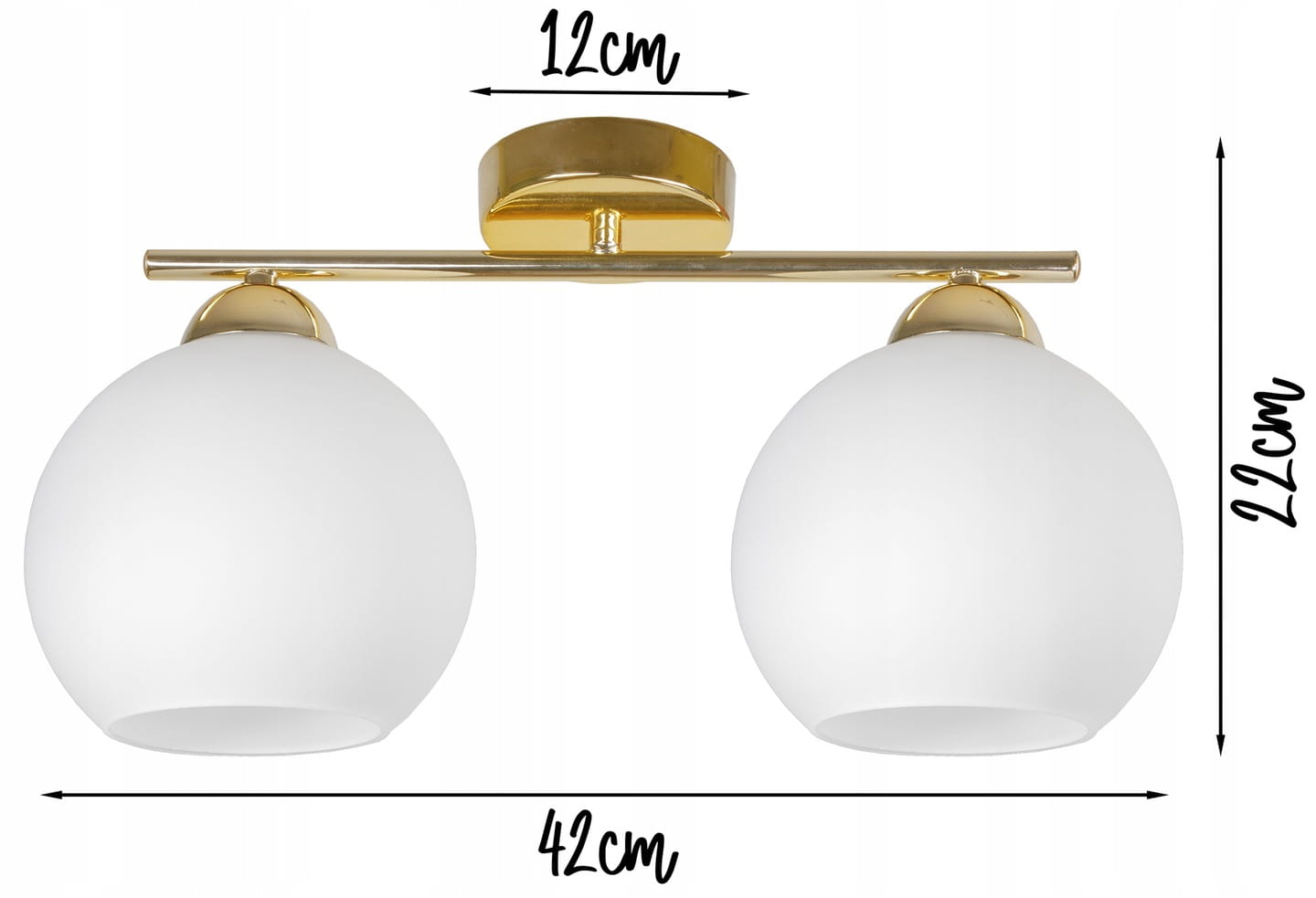 - Wymiary lampy: Wysokość max 22 cm, długość 42 cm, podsufitka 12 cm