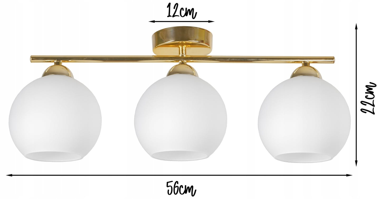 - Wymiary lampy: Wysokość max 22 cm, długość 56 cm, podsufitka 12 cm