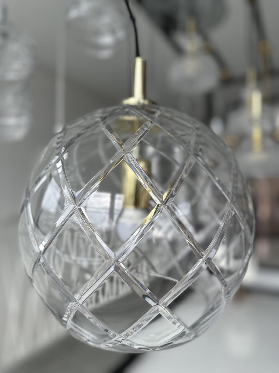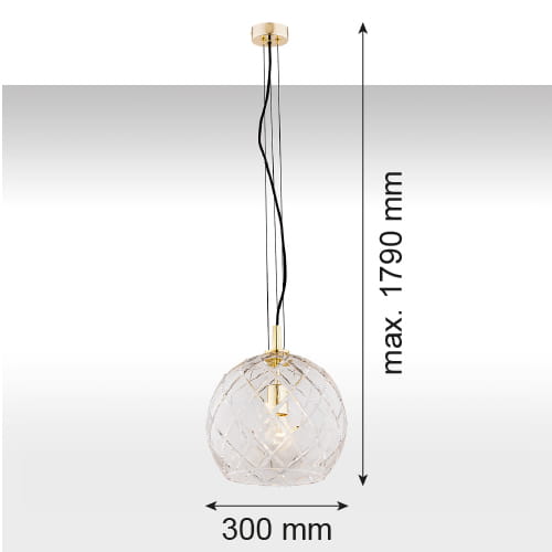 Lampa wisząca ze szklanym kloszem (duża) OVIEDO mosiądz