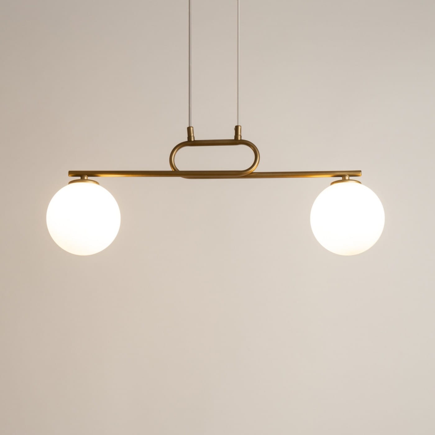 Oprawa oświetleniowa LAMPA wisząca TES ZŁOTA GOLD 2-pkt 33632 SIGMA doskonale wkomponuje się w jadalni nad stołem lub w kuchni nad blatem kuchennym. Stelaż lampy został wykonany ze stali malowanej na złoty mat. Lampę można swobodnie skracać we własnym zakresie.