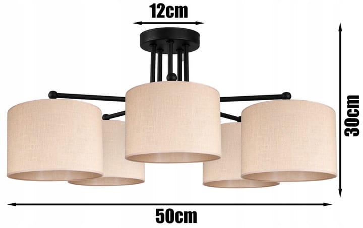 | Wymiary | Podsufitka: 30 cm x 50 cm x 10 cm, Abażur: 15 cm x 20 cm |