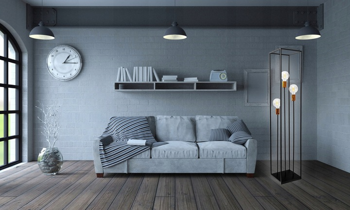 Piękna podłogowa lampa stojąca w stylu loftowym idealnie sprawdza się jako dodatkowe światło.
