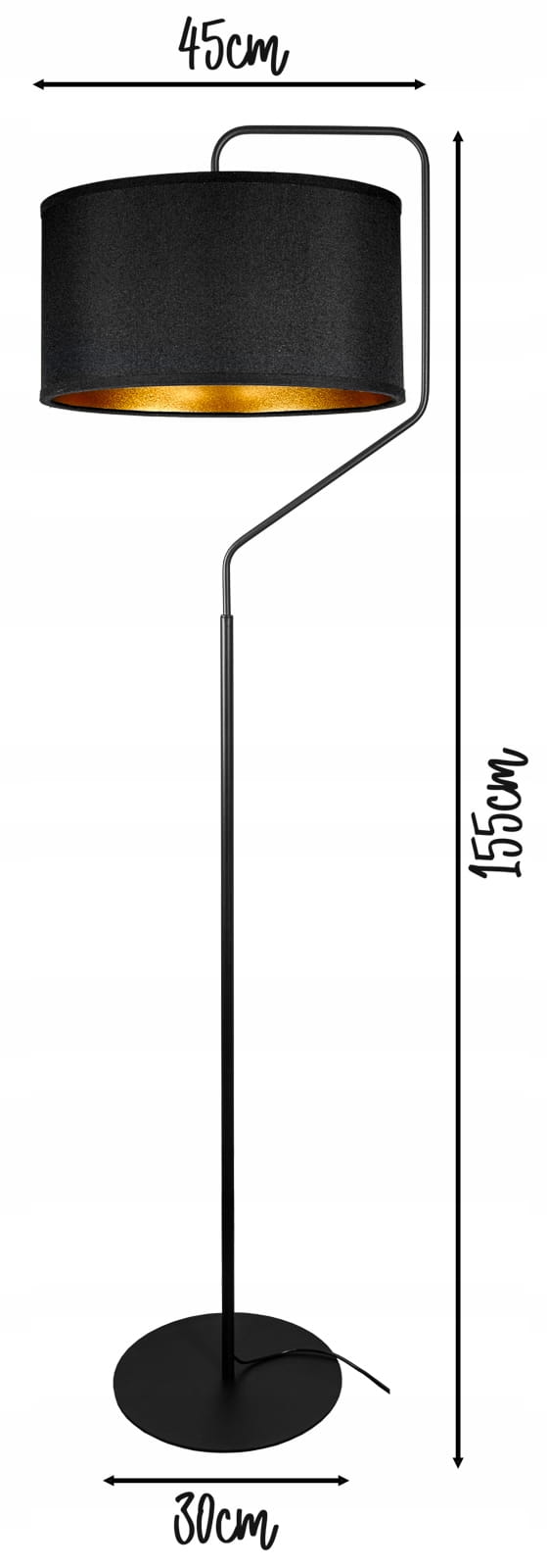Nowoczesna lampa stojąca w stylu LOFT doskonale prezentuje się we wnętrzach klasycznych i industrialnych. Posiada elegancki abażur w modnym czarno złotym kolorze od słodu z podbiciem pcv.