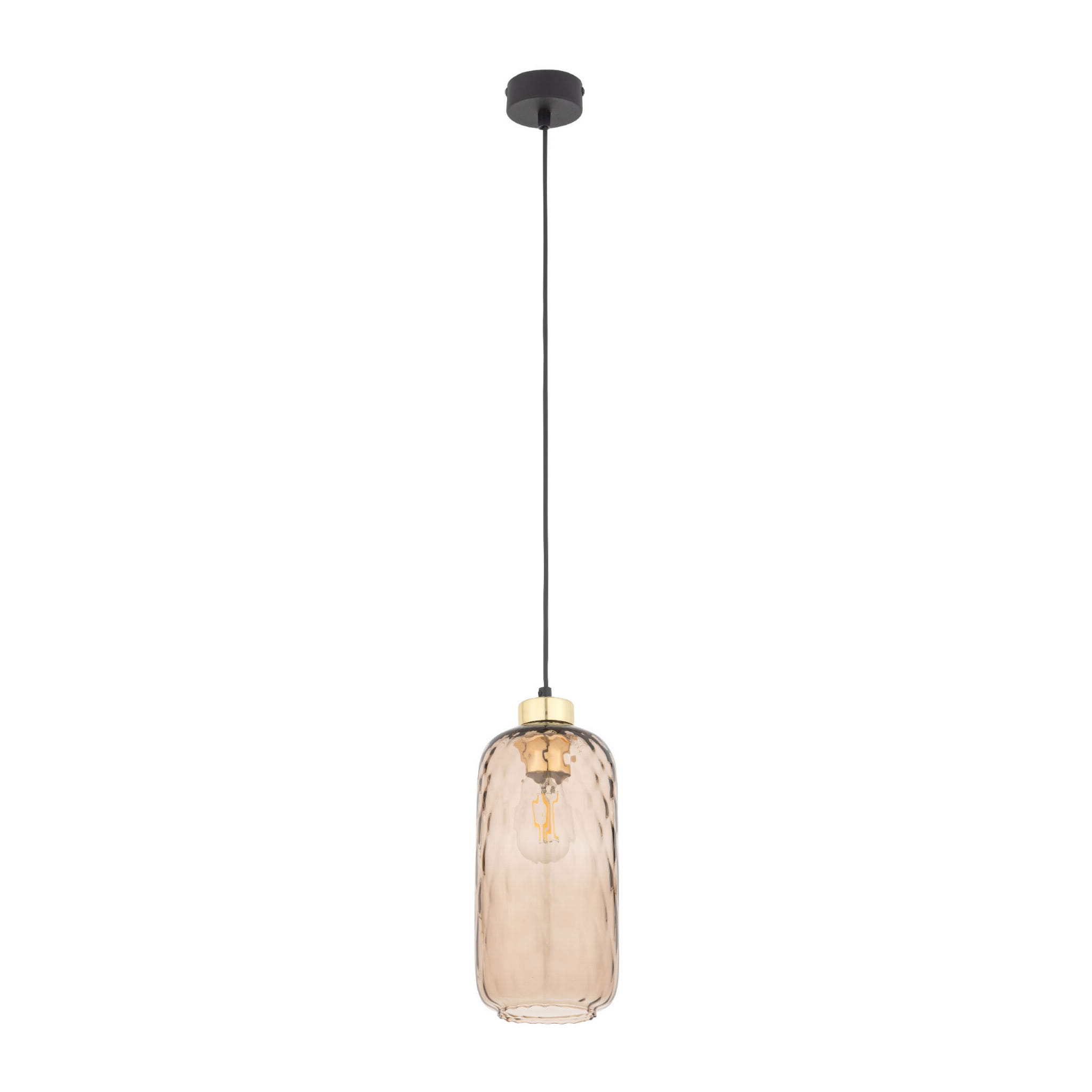 PESCARA – to rodzina lamp wiszących ze szklanymi kloszami w kolorze bursztynu o różnej wielkości. Dodatkowo na całej powierzchni klosz zdobiony jest subtelnym wzorem. Całość dopełniają złote akcenty w postaci podkloszówki. Wszystkie te elementy sprawiają, że ta piękna lampa ze szkła z powodzeniem poradzi sobie w wielu współczesnych wnętrzach.