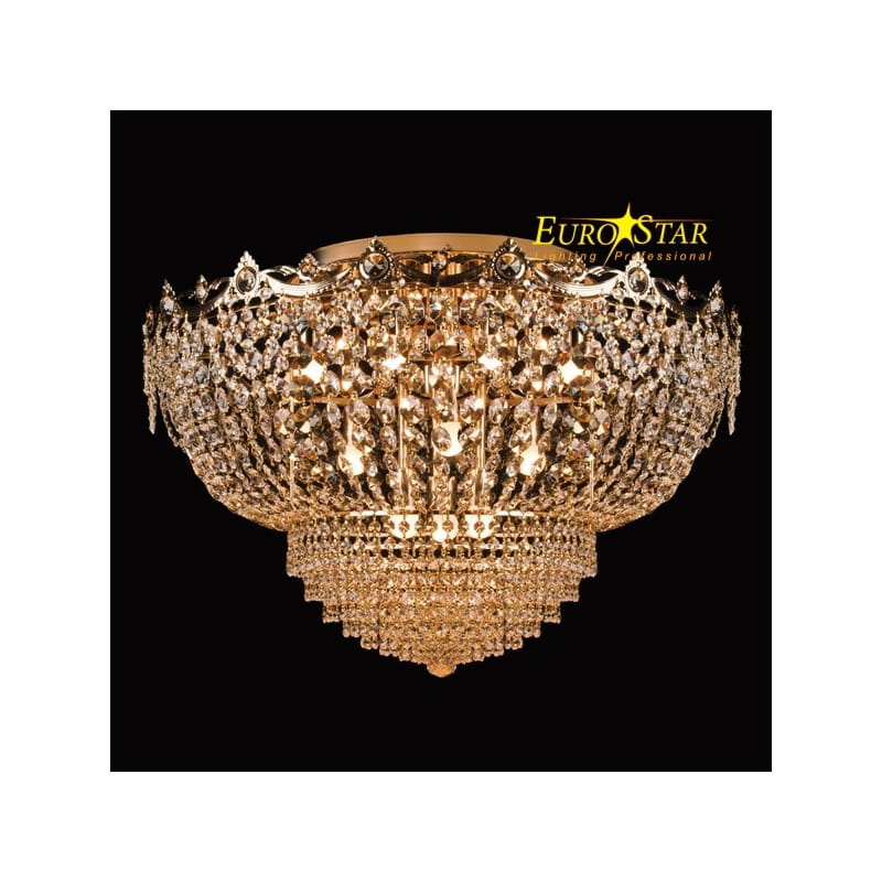 Piękny plafon kryształki MAROCCO wykonany jest z najwyższej jakości metalu w kolorze złota oraz połyskujących i odbijające światło kryształków. Plafon stylizowany jest na dworkowo-pałacowe oprawy. Zastosowano kryształ marki Strotskis ®
