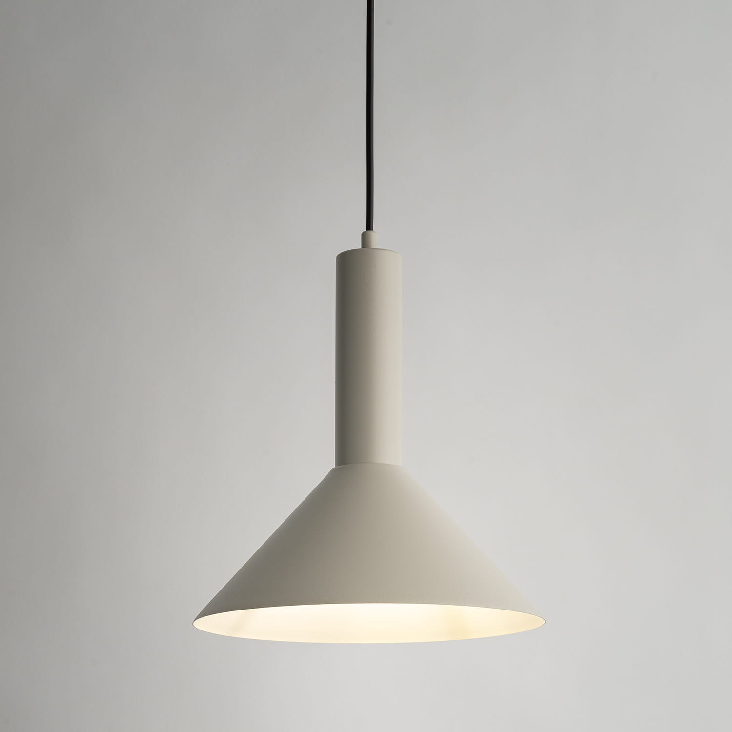 Pojedyncza, minimalistyczna lampa wisząca w kształcie stożka VITRUM to produkt wyprodukowany z wysokiej jakości stali lakierowanej. Dostępna w modnym kolorze szarego beżu będzie idealnym, subtelnym elementem dekoracyjnym i zapewni optymalne oświetlenie każdego pomieszczenia.