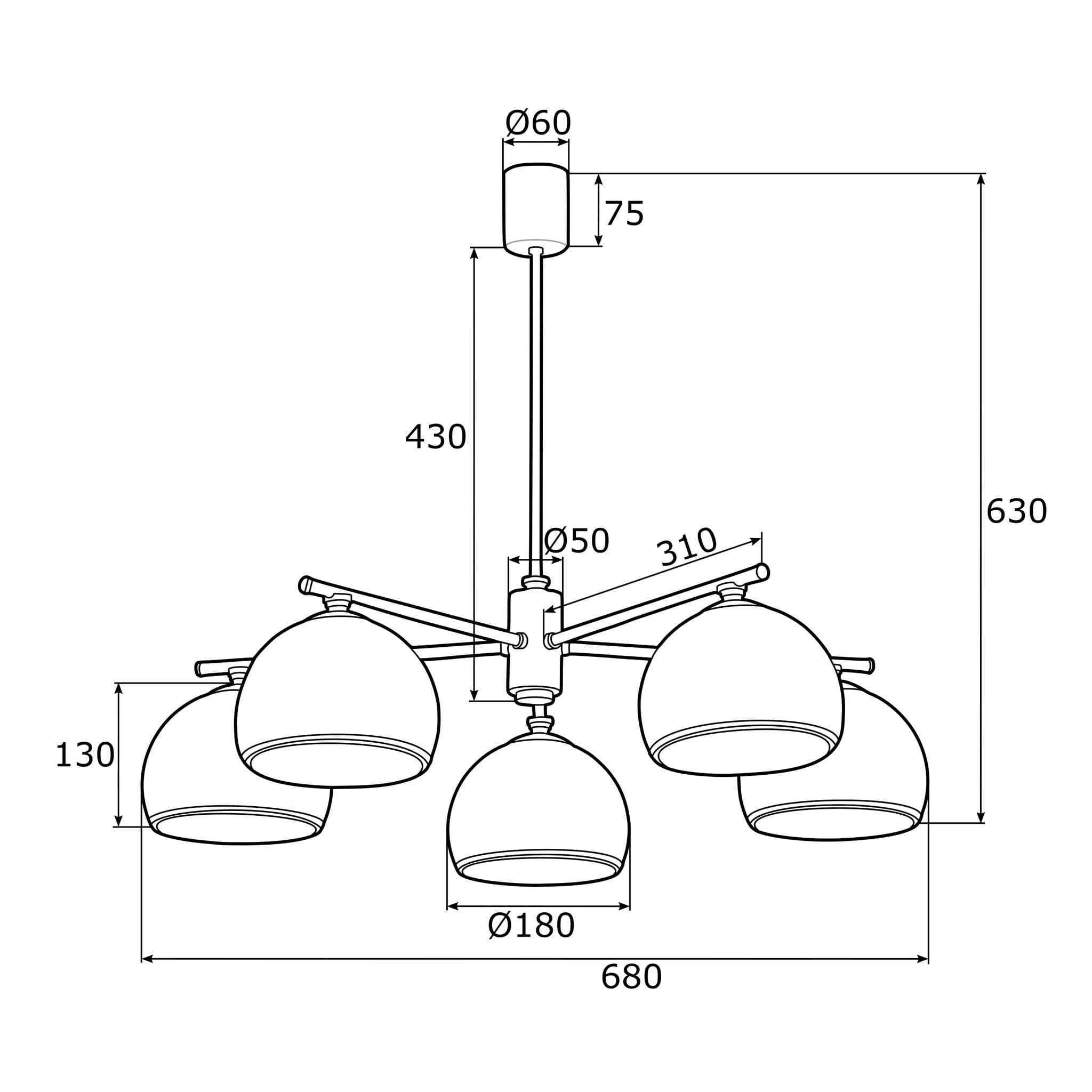 Źródło światła: 5x E27 max 15W (możliwa LED)