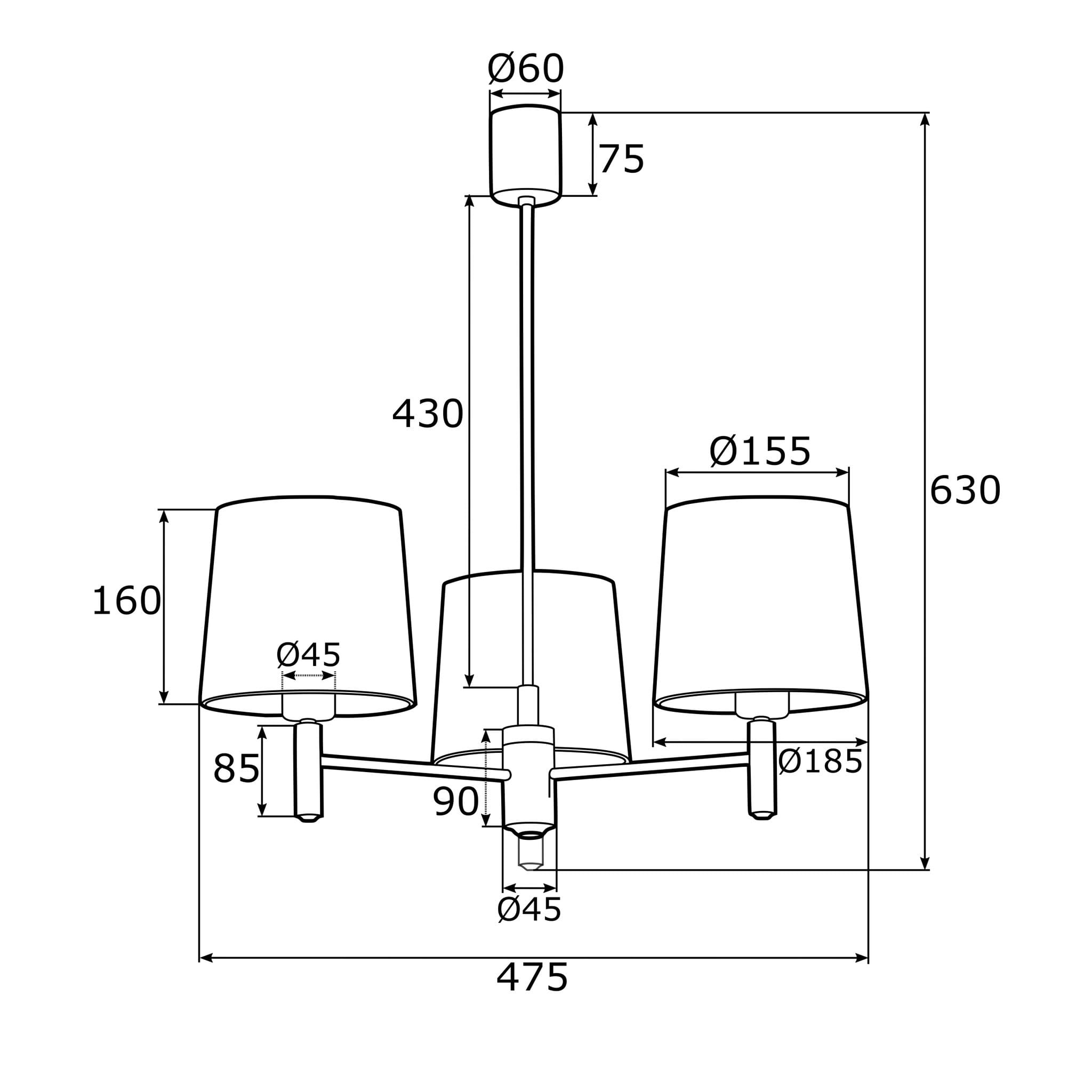 Źródło światła: 3 x E27 max 15W (możliwa LED)