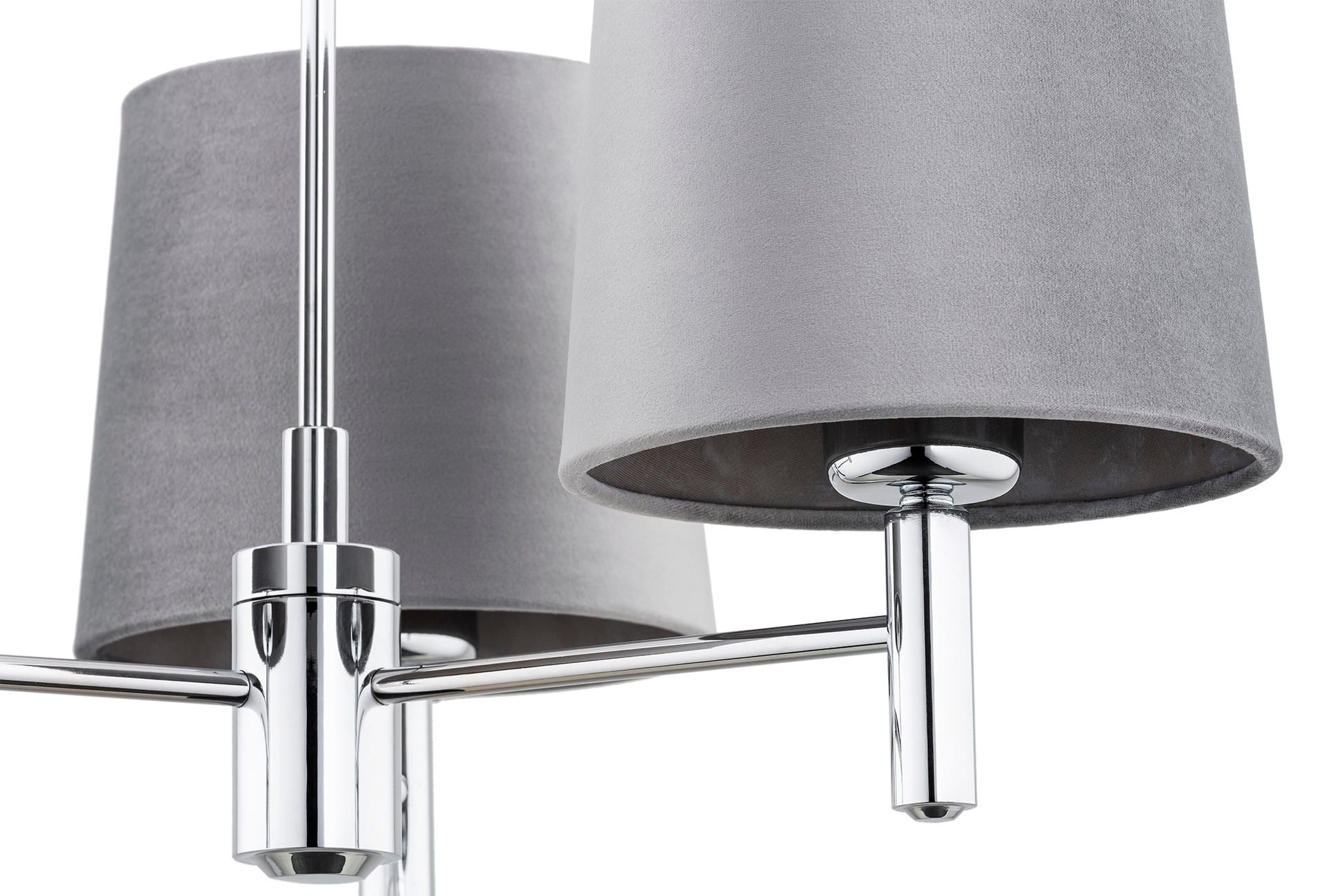 Ekskluzywny salonowy żyrandol z tkaninowymi szarymi abażurami BOLZANO PLUS to wyjątkowa propozycja eleganckiej oprawy do twojego wnętrza.